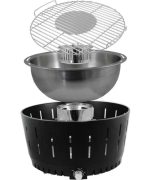 Ideale per le vostre grigliate al chiuso ed all’aperto, grazie alla sua forma conica il barbecue vi consente di grigliare i vostri cibi senza fumo poiche’ il grasso o i liquidi espulsi dai cibi in cottura colano sulle pareti interne del barbecue impedendo cosi il contatto diretto con la fiamma o con la brace.