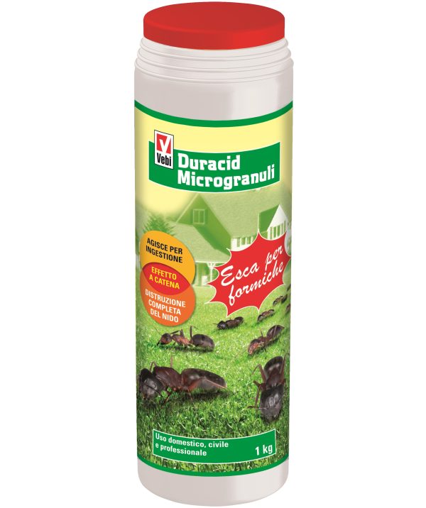 DURACID MICROGRANULI è un insetticida con formulazione specifica contro le formiche. Il prodotto è caratterizzato da un elevato potere abbattente e da un effetto residuale nel tempo, che protegge gli ambienti da nuove infestazioni.
