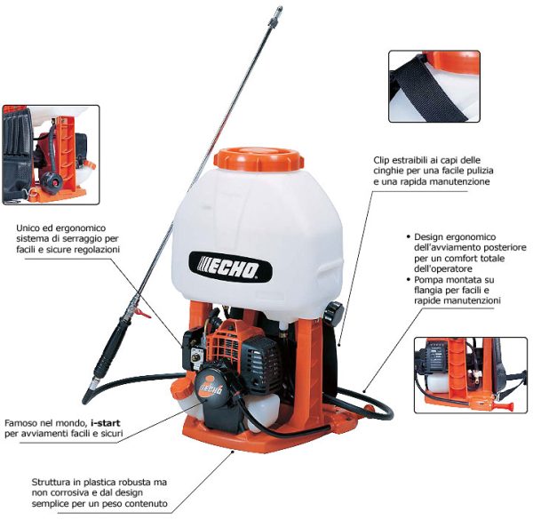 ECHO offre la pompa a pistone e la pompa a rotazione per una varietà di applicazioni: negli orti, nei parchi, e in qualsiasi posto in cui sia richiesta l’irrorazione. Gli erogatori standard e quelli opzionali permettono di svolgere molteplici funzioni.
