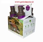 Un un nuovo formato, unico a livello mondiale, tecnicamente progettato per poter iniettare l’insetticida nel tronco dei pini e garantire il suo totale assorbimento in meno di 3 ore. Il pack contiene 4 connettori per albero, siringa dosatrice e manuale di istruzioni. Il kit è fornito di siringa in vetroresina per inserire l’insetticida all’interno delle bottigliette.