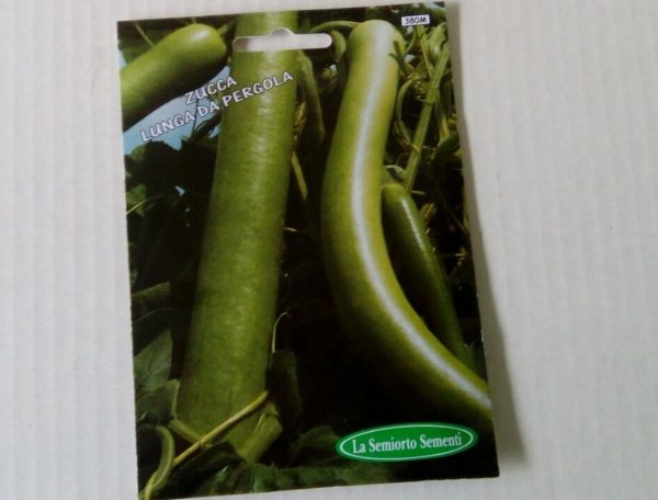 | Descrizione: Varietà molto produttiva. Frutto lunghissimo, di colore verde medio con striature chiare. Pianta a internoidi brevi con foglie interamente lobate verdi con chiazze biancastre. |